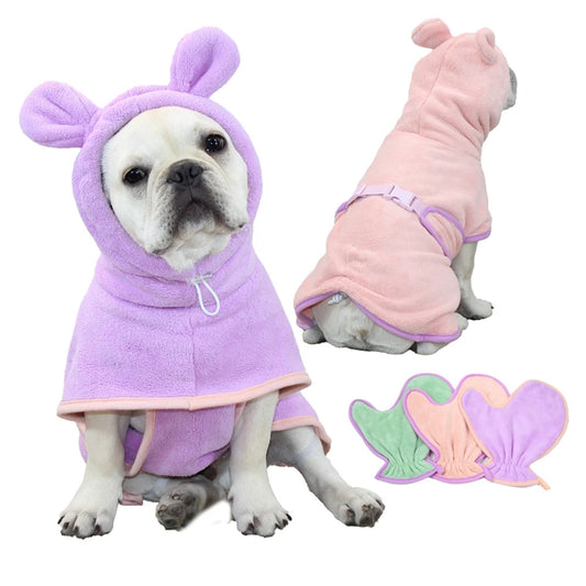 Dog Bathrobe Pet Drying Coat Clothes Microfiber Absorbent Beach Towel For Dogs Cats Fast Dry Dog Fast Drying Hooded Jacket